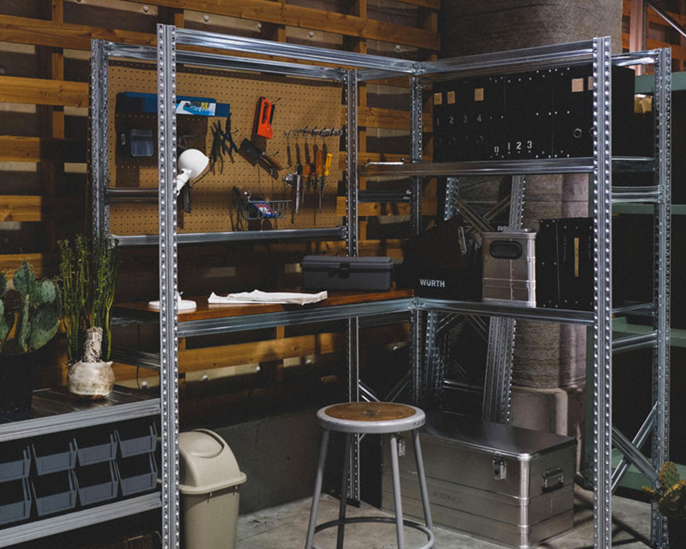 METALSISTEM 層架採鍍鋅鋼板專利結構,單層承重達 100–150 公斤,具防鏽、耐腐蝕與耐磨特性。免螺絲卡榫設計,層板高度可靈活調整,並支援多種模組化配件。40cm 深度最為實用,適合作為置物架、書架或衣架,兼具商用與居家需求。