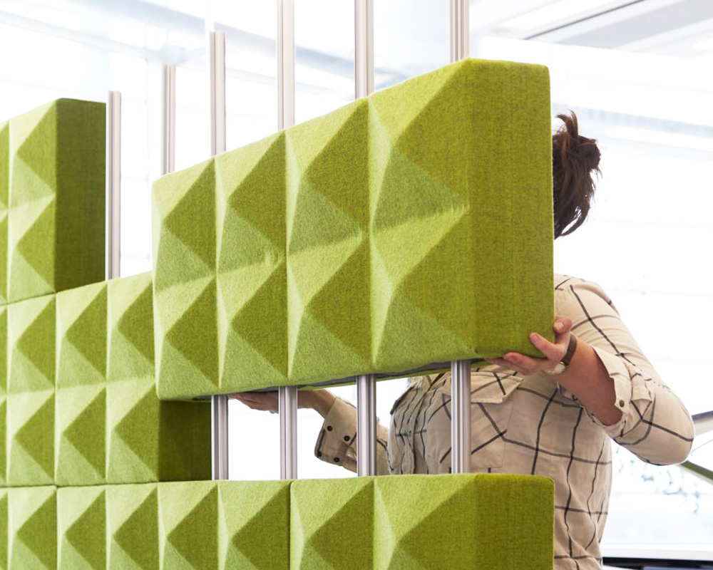 Fabricks™ (吸音材) 介於專注與活動之間。 Fabricks™旨在有效劃分空間、減少噪音並美觀大方。 這些超級隔音磚可在幾分鐘內為會議和個人工作創造臨時空間。 在開放式工作場所中,只需幾分鐘就能為會議和個人工作創造臨時空間。 您的耳朵、您的注意力和您的工作態度都會愛上Fabricks™!